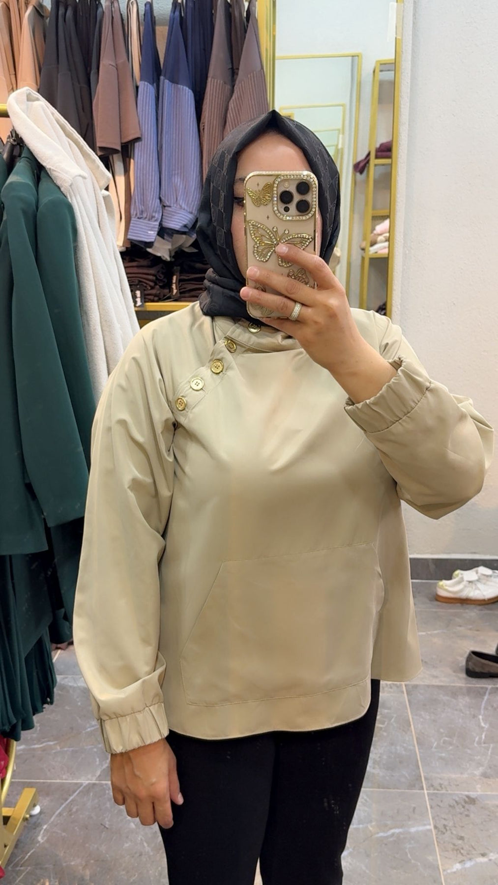 DÜĞME AKSESUARLI İNCE YAĞMURLUK