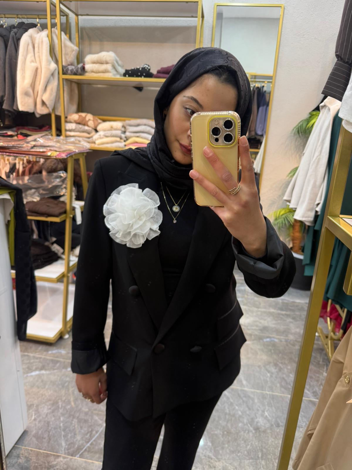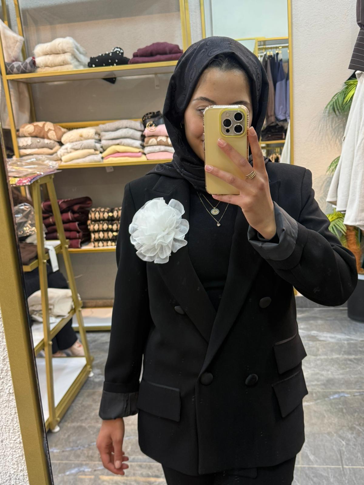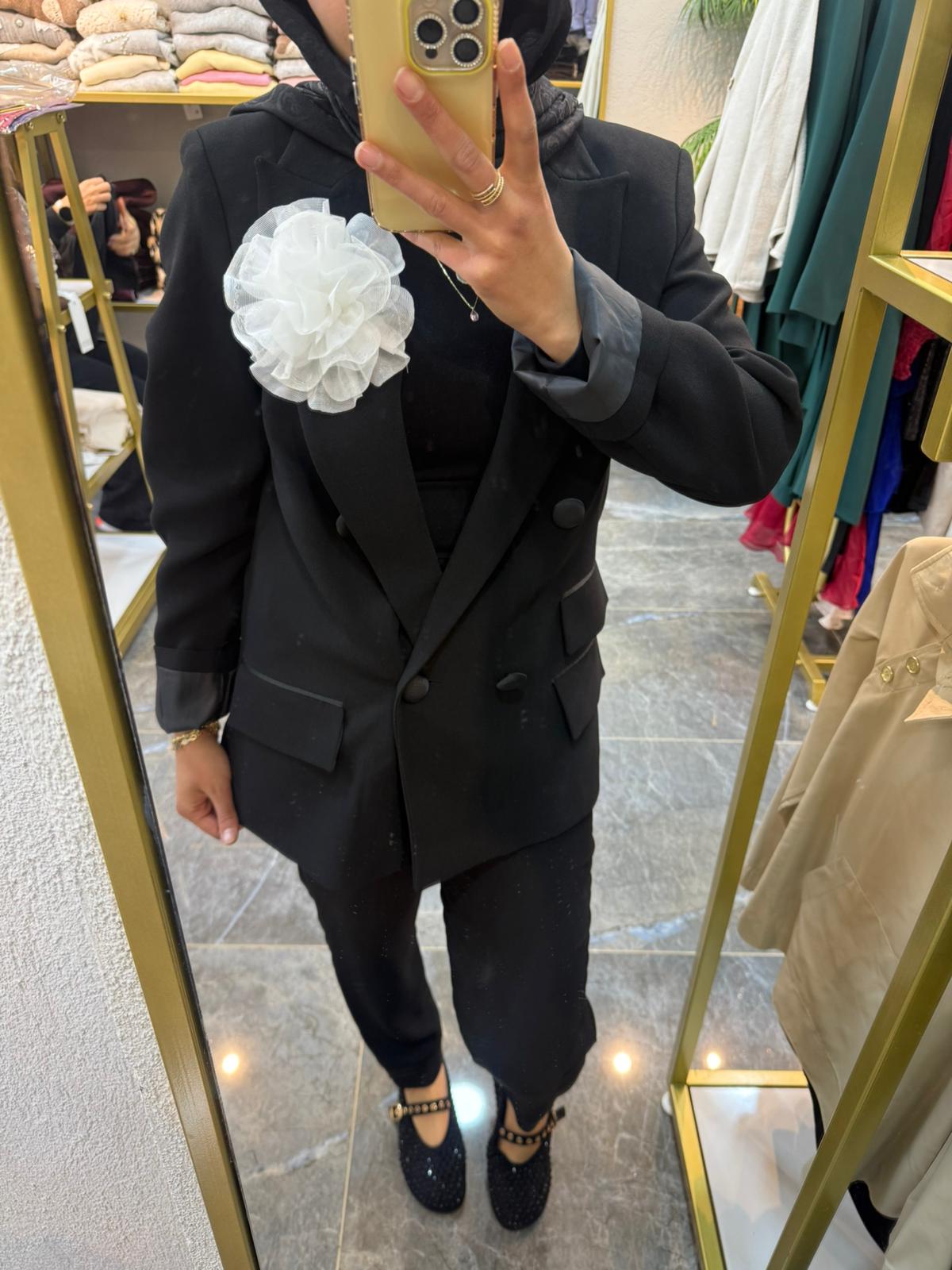 SİYAH YAKASI GÜLLÜ CEKET-PANTOLON TAKIM
