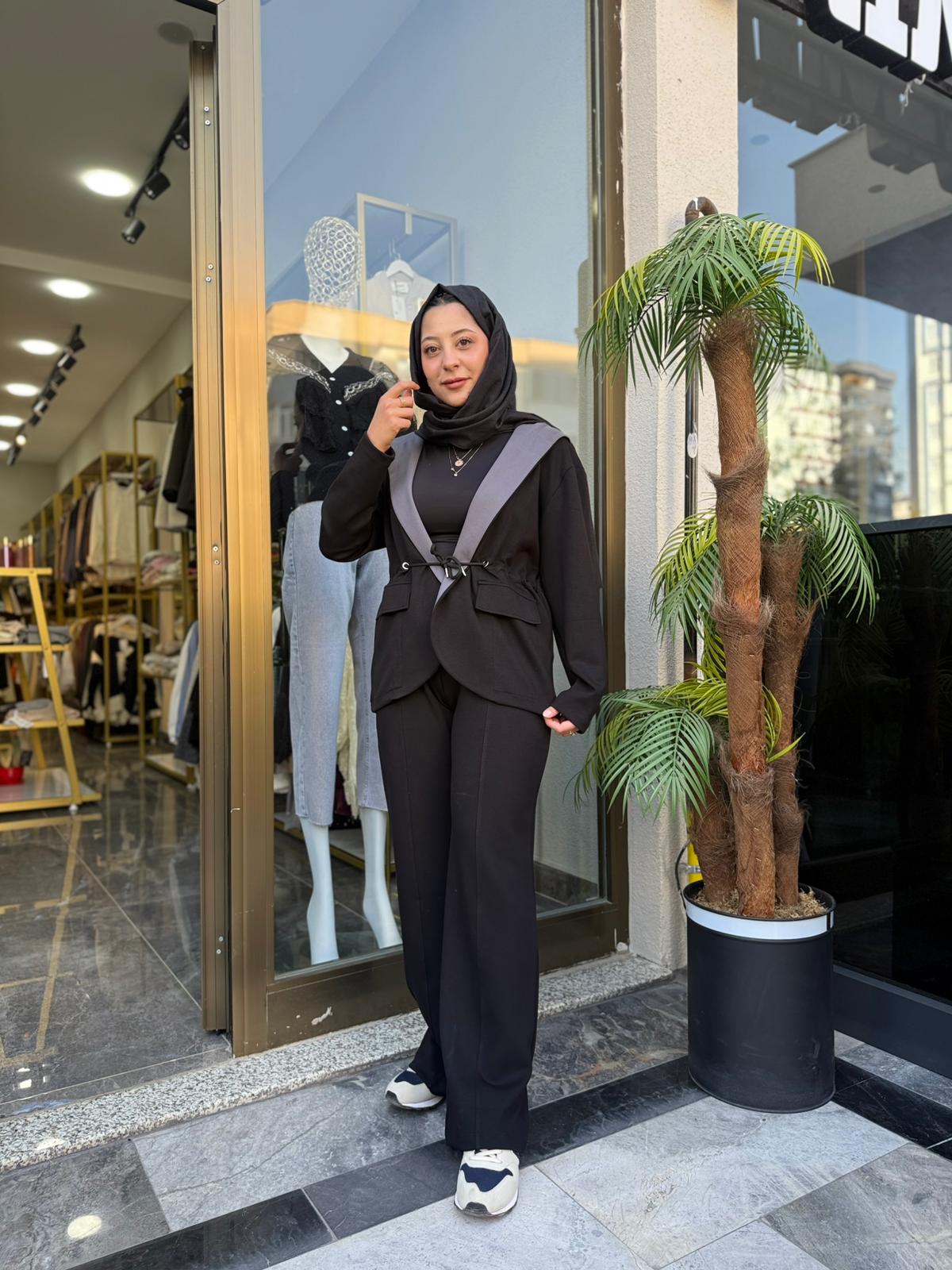 BELDEN BAĞLAMALI MODAL KUMAŞ EŞOFMAN TAKIMI