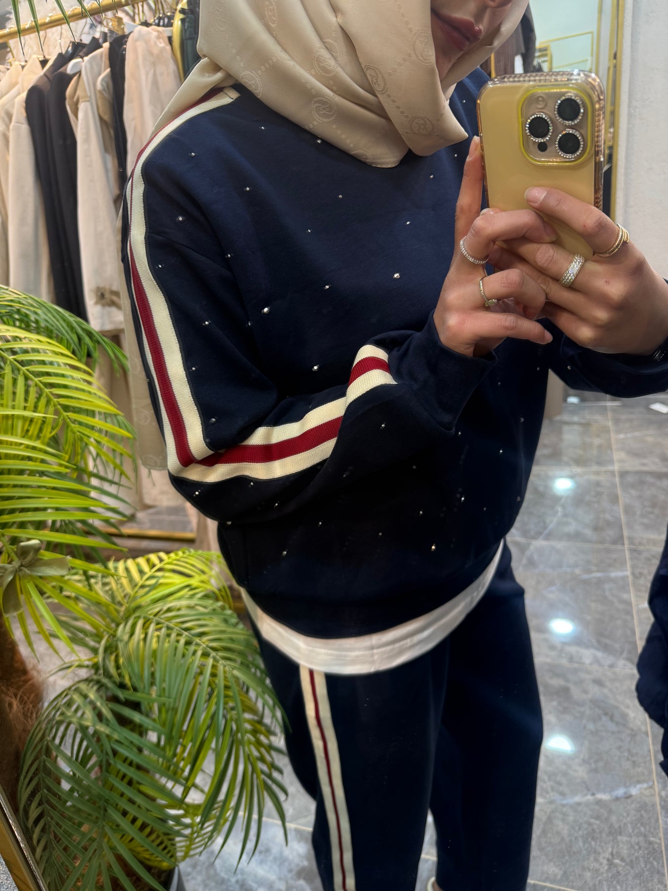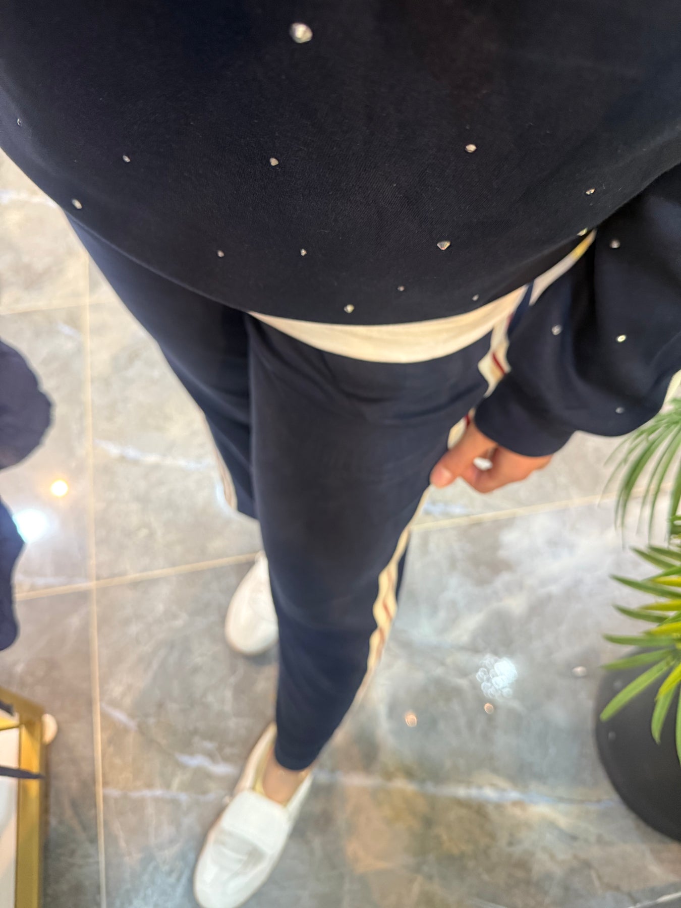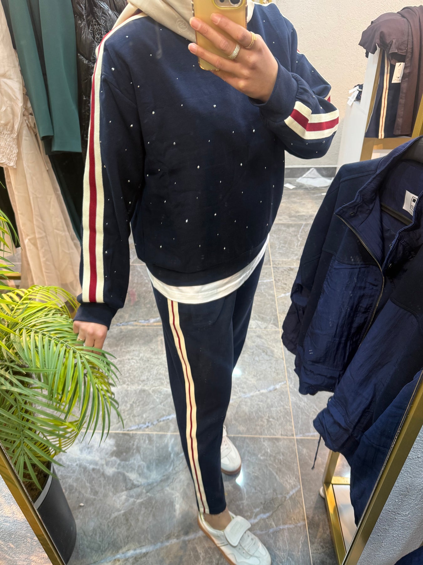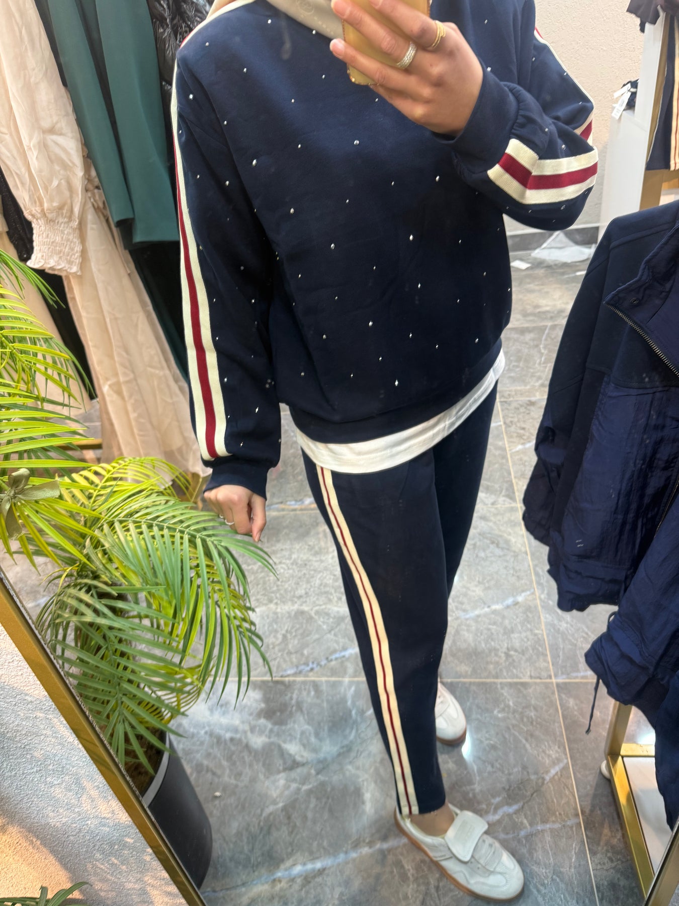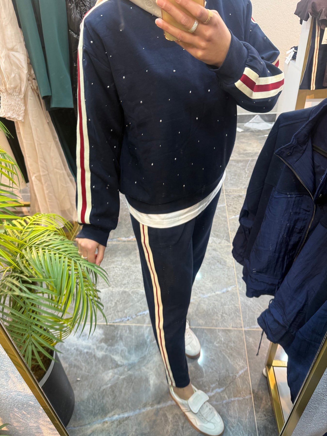 LACİVERT TAŞLI YAN ŞERİTLİ TAKIM